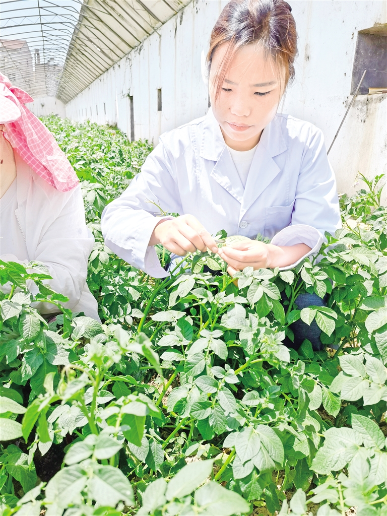 “農(nóng)民自留種現(xiàn)象普遍,導致馬鈴薯退化嚴重,單產(chǎn)水平低。”鄭敏介紹,為解決這一問題,市農(nóng)業(yè)科學研究院著力構建“脫毒種薯+高山繁種”種薯繁育體系,降低脫毒種薯生產(chǎn)成本,“使用優(yōu)質種薯,馬鈴薯產(chǎn)量甚至可比自留種產(chǎn)量翻番。”
