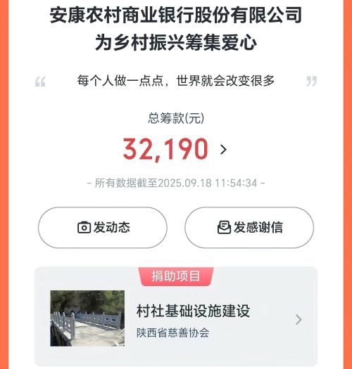 本網(wǎng)訊(通訊員 元小娟)9月以來,陜西農(nóng)信安康農(nóng)商銀行各支行積極開展“鄉(xiāng)村振興·慈善一日捐”公益活動(dòng),掀起一股愛心熱潮,彰顯對(duì)社會(huì)的責(zé)任與擔(dān)當(dāng)。