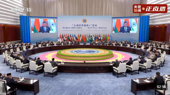 △“上海合作組織+”會議現(xiàn)場。(總臺央視記者曹亞星拍攝)