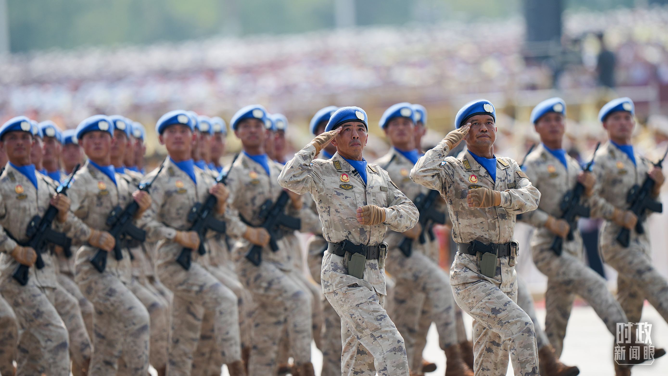 閱兵式上,維和部隊方隊闊步走來。今年是中國軍隊參加聯(lián)合國維和行動35周年,累計派遣超過5萬名維和官兵,中國是聯(lián)合國安理會常任理事國中派出維和人員最多的國家。“中國藍盔”不懼艱險、不辱使命,以熱血鍛鑄和平盾牌,用行動譜寫大國擔當,已經(jīng)成為守護世界和平安寧的關鍵穩(wěn)定力量。