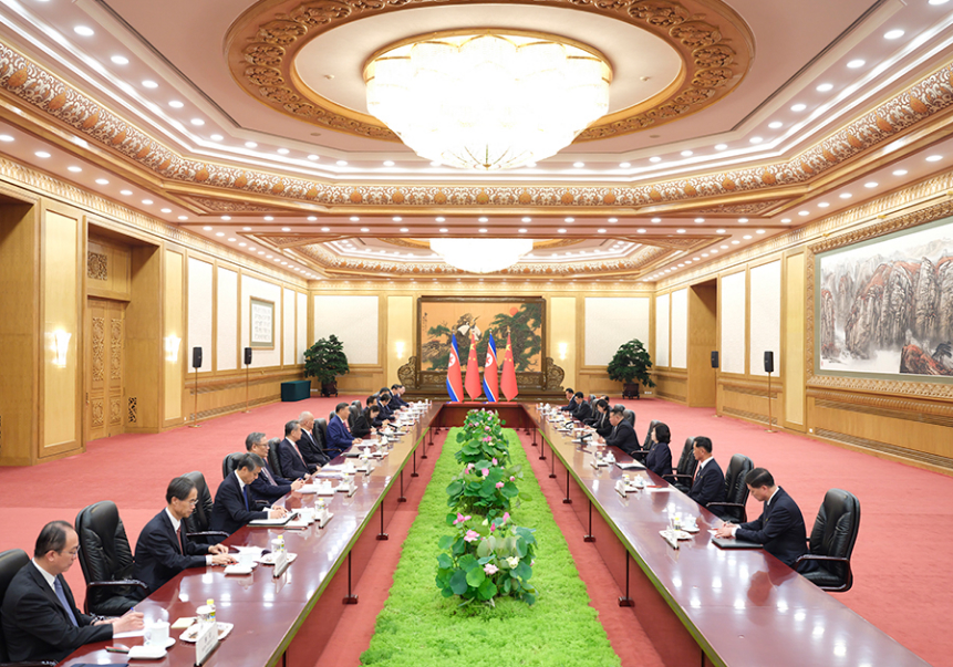 9月4日晚,中共中央總書記、國(guó)家主席習(xí)近平在北京人民大會(huì)堂同來(lái)華出席紀(jì)念中國(guó)人民抗日戰(zhàn)爭(zhēng)暨世界反法西斯戰(zhàn)爭(zhēng)勝利80周年活動(dòng)的朝鮮勞動(dòng)黨總書記、國(guó)務(wù)委員長(zhǎng)金正恩舉行會(huì)談。