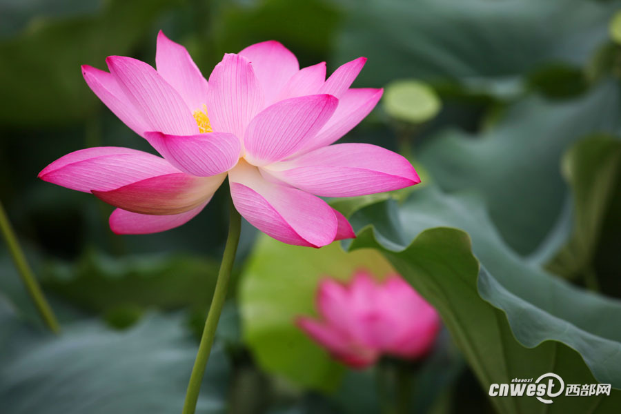 曲江池荷花爭(zhēng)相開放 端莊美麗引游人