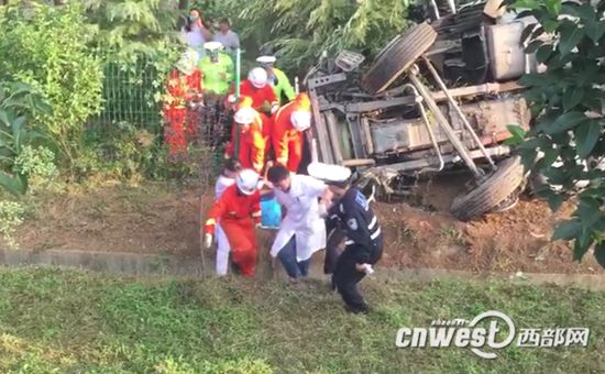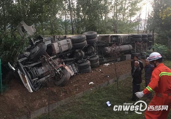 今天(9月13日)5時52分,一輛拉運大蒜的河南牌照半掛車在西寶高速距眉縣服務(wù)區(qū)兩公里處沖下護欄側(cè)翻,車上2人被困,寶雞公安消防支隊眉縣中隊接到報警后將被困人員救出送往醫(yī)院救治。