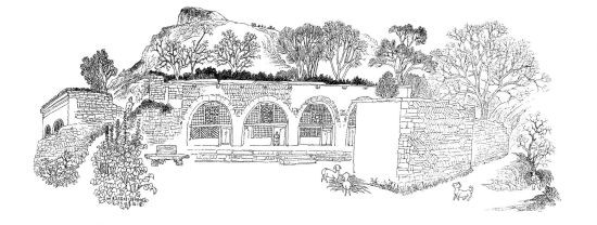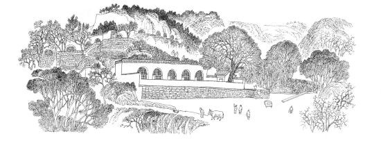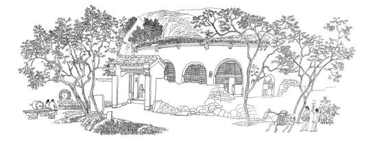 陜北革命舊址寫生,面對復雜的景物,須瞬間分析,即刻做出判斷、選擇、取舍、構圖,抓住整體、突出特點,果斷下筆。以線寫生,務求準確,落筆后,線不可重復,也無法修改。寫生時,常常左手打傘,天熱時遮陽光,每當大汗淋漓,也顧不上擦;下雨時,盡量用傘遮住畫紙,堅持畫完,即便衣服濕透也無所謂。如果對寫生作品不滿意時,就重新赴舊址寫生,僅涇陽縣云陽革命舊址,他就去過4次,清澗縣石嘴驛去了3次,直到畫好為止。