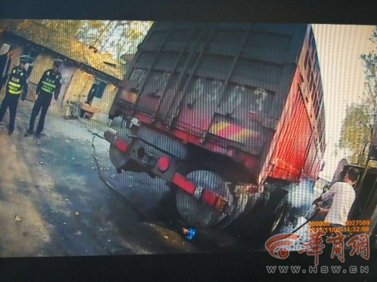 楊劍立即向旁邊的商鋪借來(lái)水桶和司機(jī)兩人一同滅火,但是火勢(shì)很兇猛,一直不能將火源熄滅。于是,楊劍立即向附近執(zhí)勤的同事打電話求助,接到電話后,中隊(duì)輔警陳臣、宋飛、付琦三人駕駛警車趕到現(xiàn)場(chǎng),一邊對(duì)該路段實(shí)施臨時(shí)交通管制,疏導(dǎo)過(guò)往車輛,一邊指揮起火的貨車,將車輛開進(jìn)附近的修理廠,拉來(lái)水管將明火撲滅。