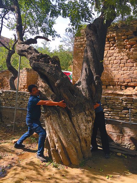佳縣朱家坬鎮(zhèn)泥河溝村,在陜北紅棗栽植的歷史上,是一個富有神奇色彩的地方。村里有一棵“棗樹王”,據(jù)專家考證已有1300多年樹齡,僅樹干周長就超過3米,兩個成年人也抱不攏,至今每年仍產紅棗近百公斤,被譽為棗樹中的“活化石”。在“棗樹王”周圍,還有百余棵生長了近千年的古棗樹,形成了一個頗具特色的古棗園。園中的石牌坊上刻著“棗源”二字,足見栽植歷史的悠久和對陜北紅棗栽植的影響。