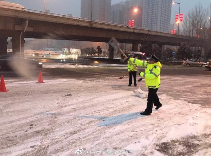 新城轄區(qū):二環(huán)輔道有結冰情況,韓森路路面,小東門盤道有積雪,咸寧路,華清路路面有結冰情況,都已經(jīng)通知市政清理撒鹽!痉e雪、結冰5處】