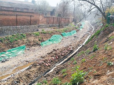 記者一行從位于臨潼建業(yè)家園小區(qū)南面的大秦建材批發(fā)市場直往北走,發(fā)現(xiàn)去年墻外的一片垃圾和臭水已經(jīng)不見了蹤影。之前排水管排出的臭水裸露在地面,臭水溝兩旁堆滿了生活垃圾,如今排水管口和長長的水泥管道連接在一起,排出的污水順著水泥管道直接從地下流走,已經(jīng)看不到污水的影子,也聞不見臭味,只聽到水泥管道里傳出嘩啦啦的水聲。兩邊的垃圾明顯被鏟車清運(yùn)了,現(xiàn)場還留下鏟車鏟過的痕跡。水泥管道的一大半已經(jīng)被埋在地下。