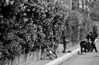 4月17日上午11時,西安市電子四路一社區(qū)圍墻外,綿延400米的薔薇花探出欄桿,形成一道靚麗的風(fēng)景線。rMY安康新聞網(wǎng)
