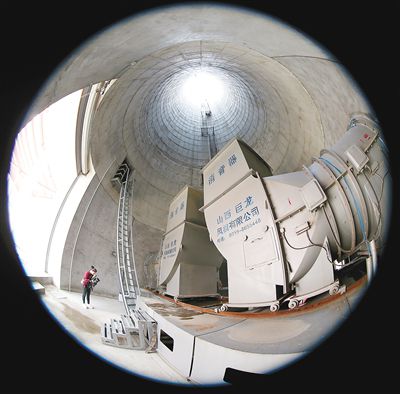 遠遠地看,“凈化塔”更像一個大煙囪。一腳踏進塔內(nèi),首先感受到的就是撲面而來的風(fēng),就是這股風(fēng)將臟空氣“吸”進體內(nèi)進行凈化。記者看到,在塔體的三面,有不同材質(zhì)的過濾網(wǎng)。臟空氣經(jīng)過過濾網(wǎng)之后,通過導(dǎo)流塔將干凈的空氣排出。其原理和家用空氣凈化器差不多,只是“凈化塔”的能源不是電,而是太陽能,于是有了“大型太陽能城市空氣清潔綜合系統(tǒng)”這個“全名”,但是曹軍驥研究員還是習(xí)慣叫它‘凈化塔’,大概是因為它和64米高的大雁塔身高差不多,又能凈化空氣。