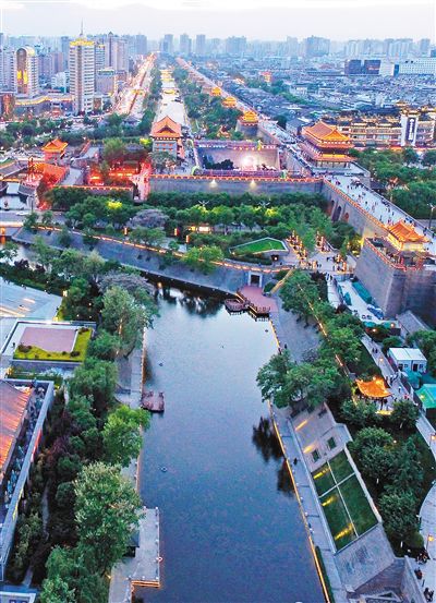 2017年12月,朱雀門至西門綜合改造工程已正式完工。通過(guò)河道綜合改造、水資源全面利用、河道水體循環(huán)系統(tǒng)及水質(zhì)處理系統(tǒng)安裝等工程,采用了接觸氧化、底泥消解、生態(tài)修復(fù)等工藝,大幅延長(zhǎng)了再生水使用周期,新增景觀水面面積6.5萬(wàn)平方米,新增護(hù)城河護(hù)坡綠化面積7萬(wàn)平方米,有效的節(jié)約了水資源,改善了護(hù)城河水質(zhì)。