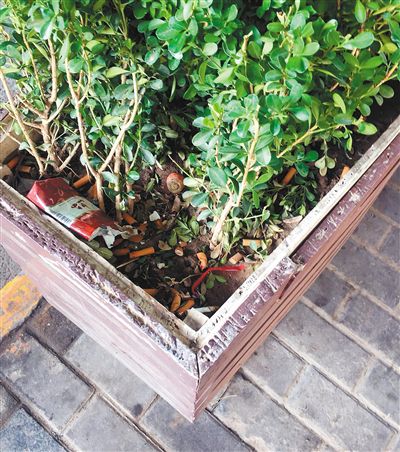 街道兩邊每隔幾米都放置一個花壇,開得嬌艷的花兒將城市裝點得更加迷人。然而,在太白南路部分路段的花壇里,布滿了丟棄的煙蒂、衛(wèi)生紙、果皮等雜物,成了“垃圾桶”,影響了花壇的美觀、整潔。