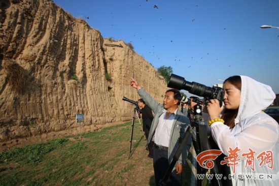 當(dāng)?shù)鼐用駝⑸n峰是一名攝影愛好者。今年4月,他從朋友圈得知石川河南岸有崖沙燕!爱(dāng)時(shí)我就和幾個(gè)攝友一起來看,并決定邀請(qǐng)更多的攝影愛好者一起來拍攝!彼f,從4月至今,他們已經(jīng)多次到這里拍攝。