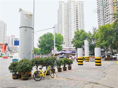 “太不美觀了,這些灰色的橋墩很難看,在人行道中間也擋路,友誼路和太白路分別是東西和南北方向的主干道,人流量也很大,上下班高峰行人多時(shí),它們特別礙事。其實(shí)拆掉是最好的選擇,路面還能再開闊一點(diǎn)!崩钆空f,這些橋墩原本灰色的柱體表面漆皮紛紛脫落,斑駁不堪,一到夜間視線不好,經(jīng)常有行人走著走著就撞了上去,存在很大的安全隱患。因此,近期橋墩下部被刷上了黑黃相間的警示標(biāo)志。