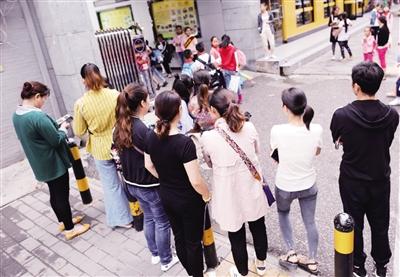 家長們在校門口尋求解決辦法 記者 李宗華攝