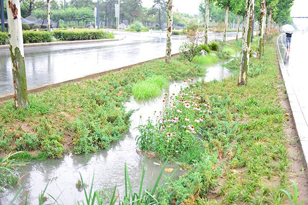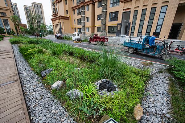 遍布于居民小區(qū)、學校、商業(yè)場所、公共區(qū)域的雨水收集池等蓄水模塊,則成為了大大小小的蓄滯洪水區(qū),讓雨水最大限度地留下來,得到凈化利用,有序外排。