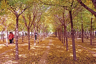 在大荔像這樣的銀杏林就有好幾處。銀杏樹下,不少人在擺著各種姿勢拍照,時而抓起一把樹葉順勢拋向空中,扇形葉子飄落而下,如金色蝴蝶漫天飛舞。(李世居 記者 楊晶)