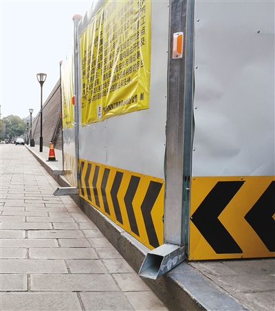 朱雀門(mén)東側(cè)順城巷內(nèi)一處圍擋基座鋼管向馬路伸出
