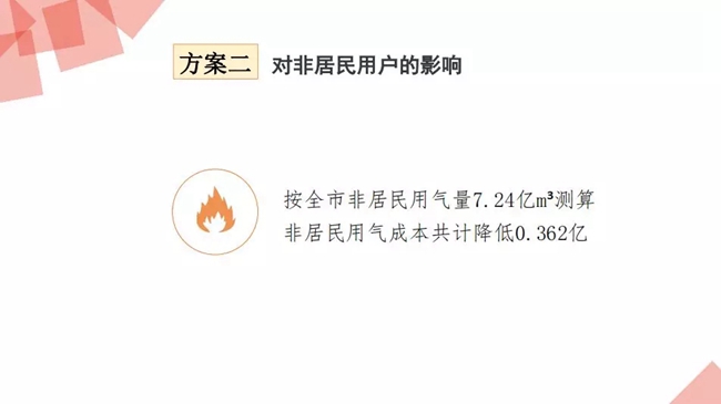非居民用氣售價(jià)由現(xiàn)行的2.30元每立方米調(diào)整為2.25元每立方米,下調(diào)0.05元每立方米。