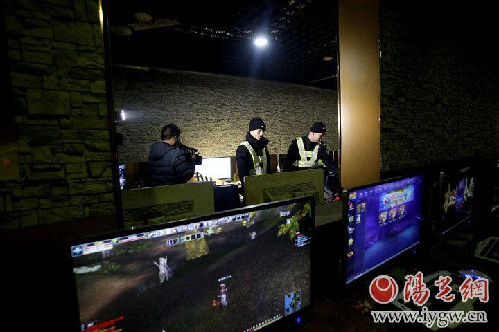民警在一家網(wǎng)吧進(jìn)行檢查,發(fā)現(xiàn)該網(wǎng)吧無證經(jīng)營,且存在安全隱患。