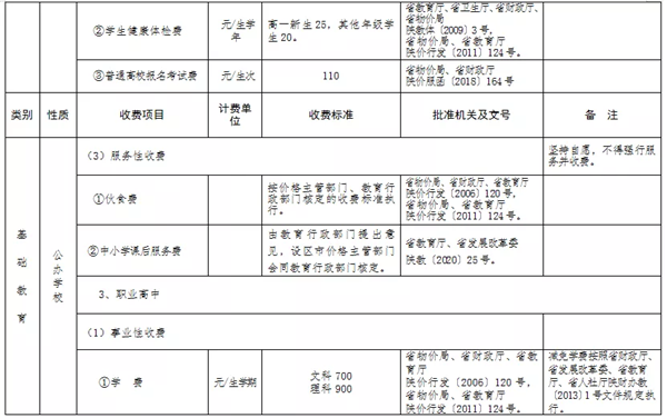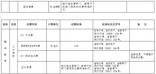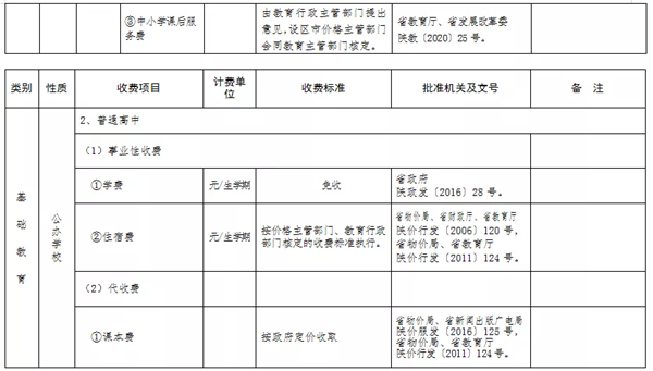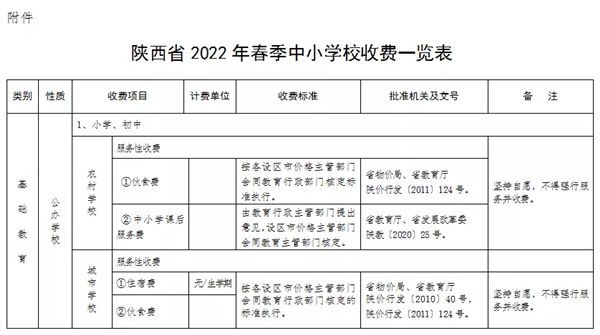 附件:陜西省2022年春季中小學(xué)校收費一覽表