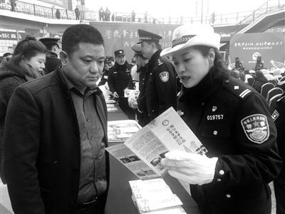 民警上街講解“110”報警相關(guān)知識 昨天是全國第33個“110宣傳日”,西安警方舉行主題宣傳活動,引來不少市民圍觀。 “師傅,現(xiàn)在假定你回到家后發(fā)現(xiàn)家里進來小……