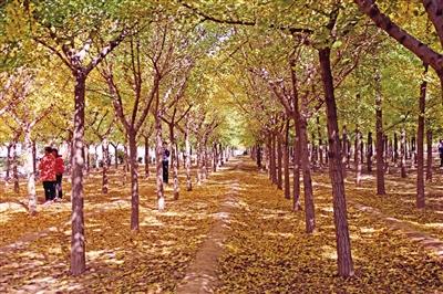金黃色的銀杏葉鋪滿地面 10月26日,記者路過大荔縣許莊一片50多畝的銀杏林時(shí),發(fā)現(xiàn)了這個(gè)當(dāng)?shù)赜忻摹熬W(wǎng)紅地”。金黃色的銀杏葉鋪滿大地,為厚重的黃土穿上了艷……