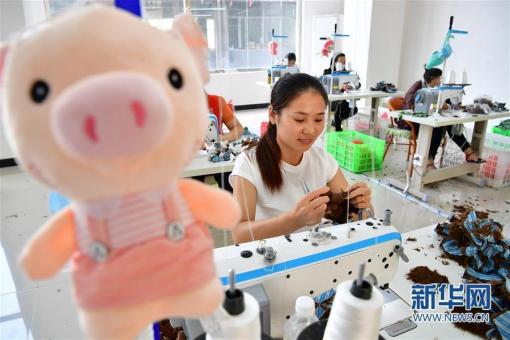 9月11日,在位于安康市紫陽(yáng)縣蒿坪鎮(zhèn)的愛(ài)多寶毛絨玩具社區(qū)工廠車間內(nèi),周遠(yuǎn)菊在加工毛絨玩具。 新華社記者 邵瑞 攝 新華社西安9月20日電 題:陜西安康:毛絨小玩具……