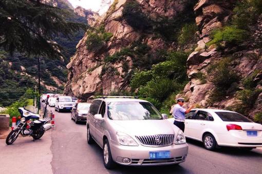高溫天進(jìn)山避暑人太多,車流量飽和,交警力保暢通