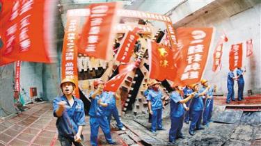 原標(biāo)題:西安地鐵六號(hào)線 首個(gè)盾構(gòu)區(qū)間雙線貫通 昨日,施工人員慶祝地鐵六號(hào)線丈八六路至丈八四路盾構(gòu)區(qū)間右線貫通。 記者 王健 攝 7月3日上午,伴隨工人……