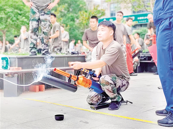 邱凱介紹,該鎮(zhèn)應(yīng)急救援隊由鎮(zhèn)級救援隊、15個村級救援分隊和水上應(yīng)急救援隊組成,共17支隊伍278人。“為了這次比武,后柳鎮(zhèn)收到通知后就積極籌備。兩個月里,參賽隊員除了到縣消防救援大隊接受專業(yè)培訓(xùn)外,平時也堅持每周訓(xùn)練。”邱凱指著場邊的灑水車說,“這輛灑水車是鎮(zhèn)上自己改造的,不僅成本低,也更適合鎮(zhèn)情實際,五層樓以上的救援也能覆蓋。