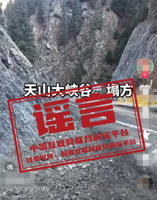 真相:近日,有網(wǎng)民在網(wǎng)絡(luò)平臺發(fā)布視頻并配文稱“天山大峽谷塌方”,引發(fā)關(guān)注。經(jīng)烏魯木齊市南山景區(qū)管理委員會核實,該情況不屬實,相關(guān)信息系謠言。網(wǎng)傳圖片實為2025年10月24日,烏魯木齊中佳勘察設(shè)計有限公司在天山大峽谷景區(qū)進入山溝1.3公里處進行山體排險作業(yè)時的畫面。(來源:“新疆網(wǎng)絡(luò)辟謠”微信公眾號)C8x安康新聞網(wǎng)